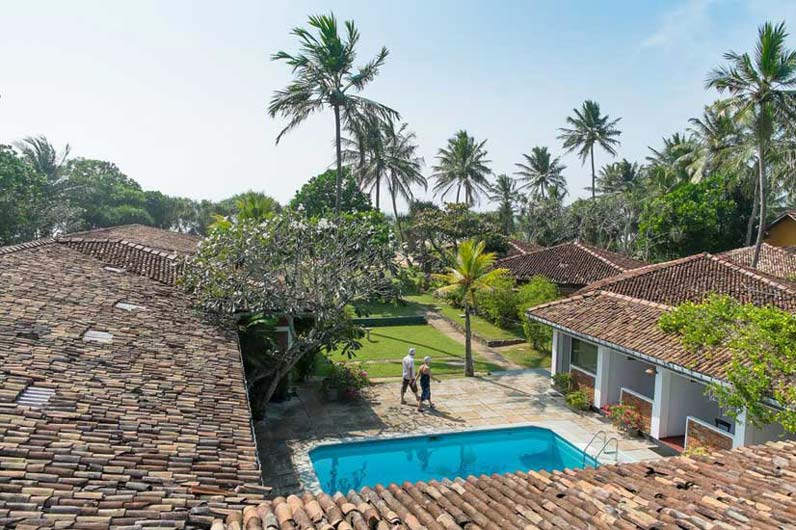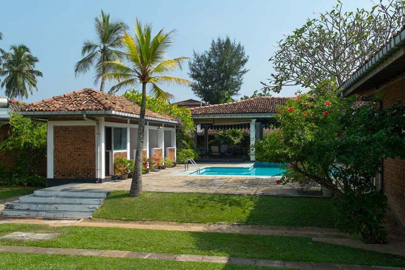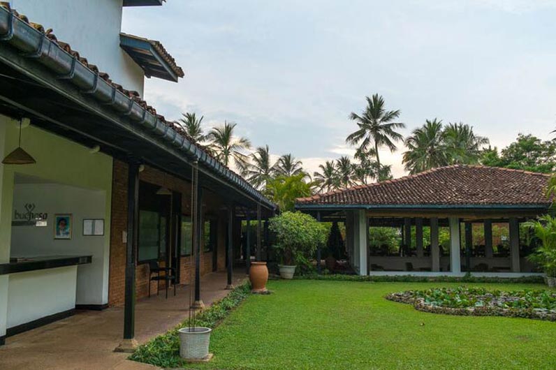 Auf der einen Seite der breite Bentota-Fluss, auf der anderen Seite der palmengesäumte Sandstrand des Indischen Ozeans: Die Kurklinik liegt auf einer Halbinsel von traumhafter Schönheit. Die 25 Zimmer im Bungalowstil sind eingebettet in einen üppigen Tropengarten direkt am Meer.